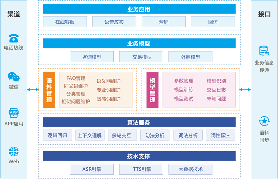 整合对接各类主流智能引擎,形成具有行业属性的AI应用能力系统,深入分析客户需求,匹配业务,进行定制开发。
